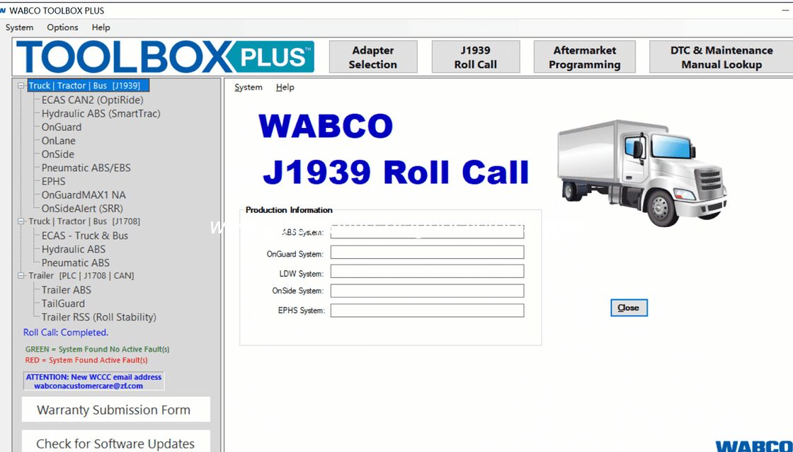 1.包括的な診断:TOOLBOX PLUS は、ABS、電子ブレーキ システム (EBS)、安定性制御システム、衝突軽減などの安全機能を含む WABCO システムの診断をサポートします。