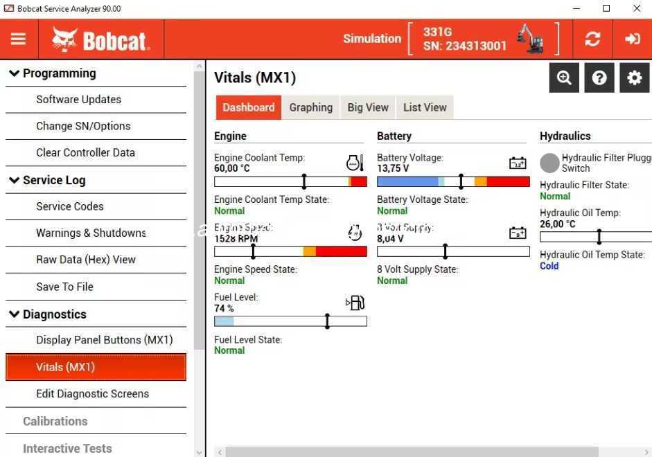 診断ツール Bobcat当社の機器に問題があるかどうかを確認し、潜在的な危険を回避するために診断ツールを使用して時間内に解決するのに役立ちます。このソフトウェアを使用すると、このプログラムのさまざまな技術情報と機能を理解し、機器を正しく診断し、早期の故障を防ぐことができます。